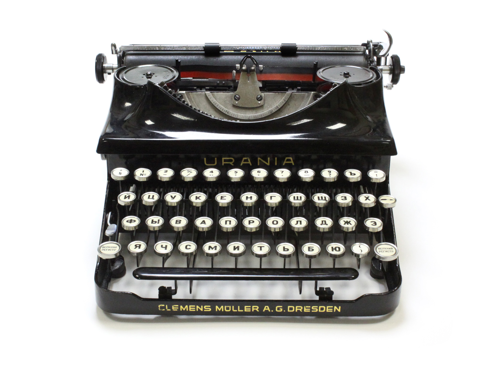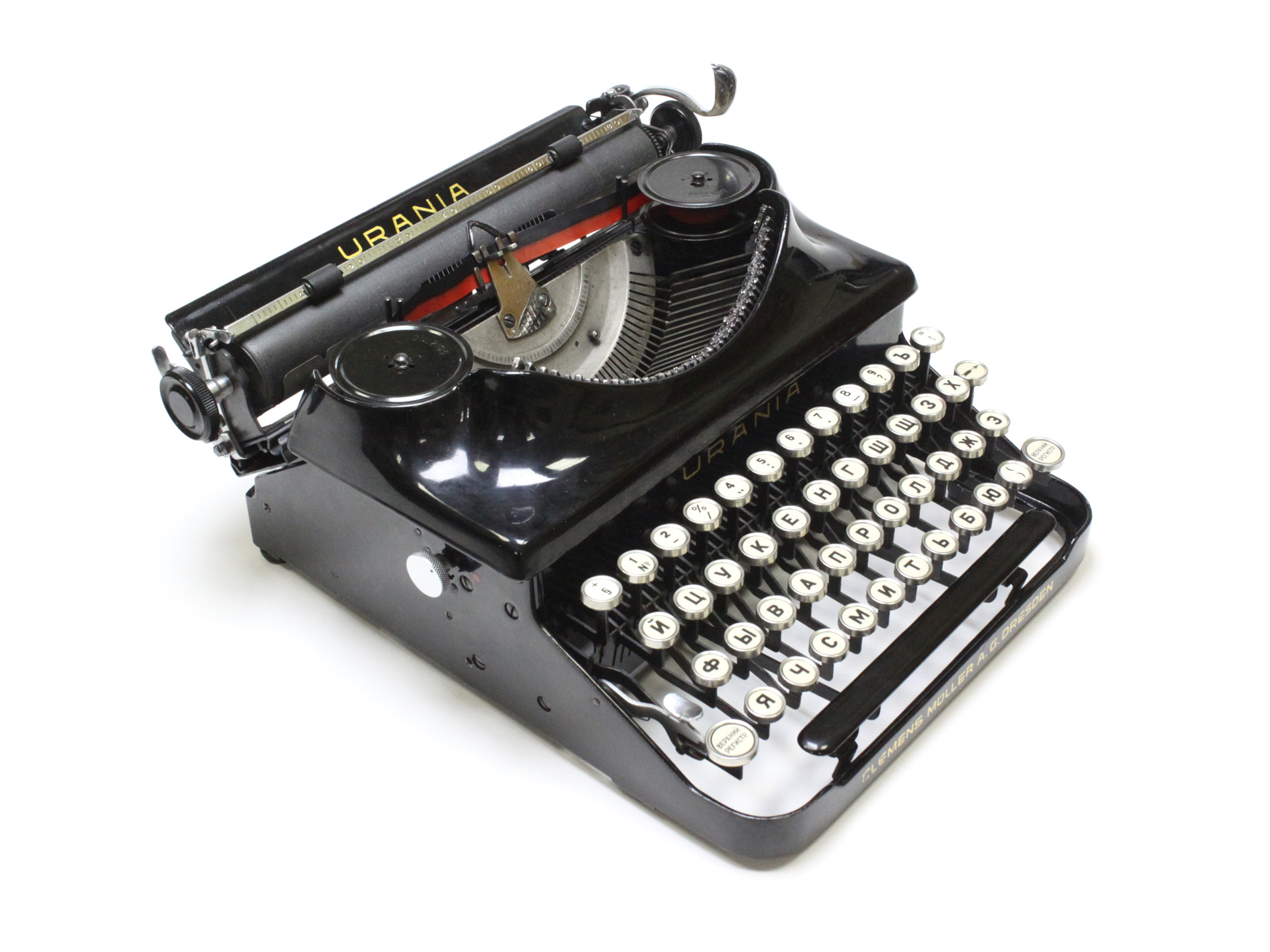 Urania / 45.000 р.Портативная пишущая машинка Urania, по информации базы данных TWDB, выпущена в 1940 году. Серийный номер 187430. Сделана в Германии. Производитель — Clemens Mueller A.G.